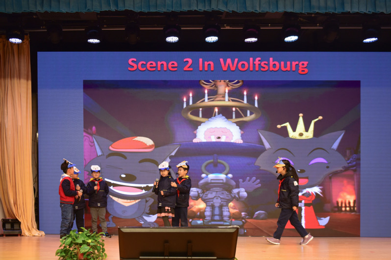 决选活动以歌曲Be what you wanna be开场,接下来是由32名选手轮流上台演讲。他们有的展示了自己的暑假之旅,有的介绍了自己父母的工作,还有的分享了故事及其背后的启示。选手们流利的英语,标准的语音语调以及大方自信的演讲给现场老师和同学们留下了深刻印象,赢得台下掌声不断。本次活动现场除了精彩的演讲,还有歌曲串烧和情景短剧秀。二6班同学们生动演绎英语版《喜洋洋与灰太狼》,将此次活动推至高潮。