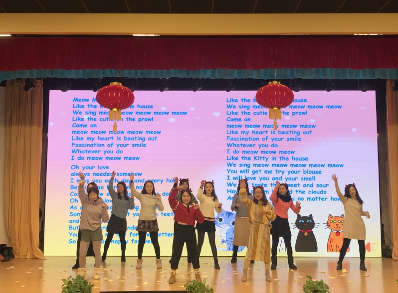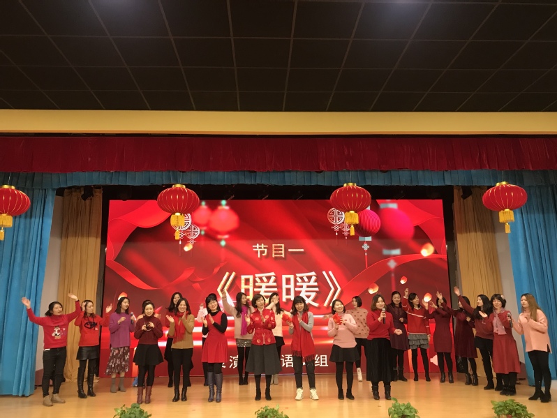 在主持人张政老师和盛佳老师的主持下,元旦迎新会正式开始,我们的老师们都是多才多艺,十八般武艺,语文老师们美妙的的歌声、数学老师们的创意串烧、英语组的专业学科素养、体育老师们的体育技能,在综合学科老师的精彩表演中将整个迎新会达到了高潮!