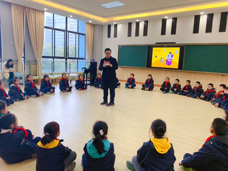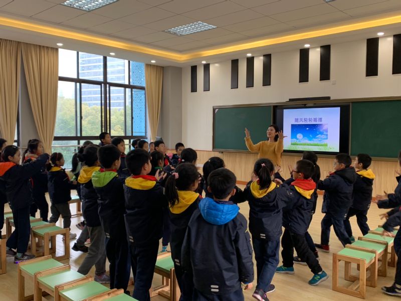 最后一节是严老师执教的活泼、充满童趣的《捉泥鳅》。严老师紧扣“捉”字,课程在以色列音乐《捉狐狸》律动中开始,一下子就把孩子带入到了郊外的世界。在教唱的环节中,老师运用柯达伊教学法让孩子们把握住歌曲的音准。生动有趣的音乐课在同学们悦耳的歌声中结束。