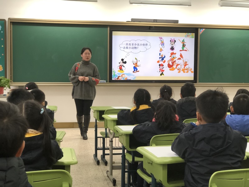 吴凡老师在课上创设了孩子们喜爱的《米奇妙妙屋》的情境,通过寻找小动物、动物运动会等有趣的环节,让学生综合运用本学期所学知识解决各种实际问题。