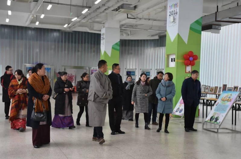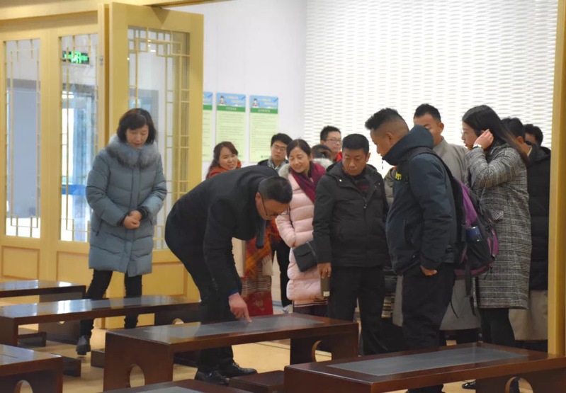 代表团老师们了解我校选修课,驻足在图书馆国学堂内