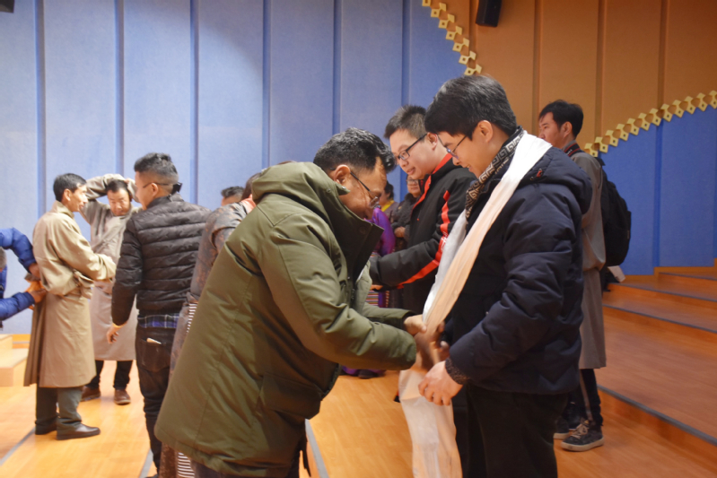 雪小学代表向我校赠与珍贵的礼物——织锦唐卡