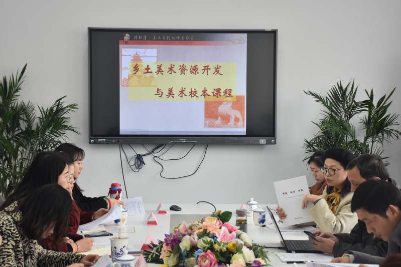 傅特给老师们带来了满满的“干货”——《乡土美术资源开发与美术校本课程》讲座,傅特从国家教情的大背景出发,顺应新课改,结合《美术新课程标准》,给老师们讲授如何将地方美术资源开发、利用并传承其意义与价值,从而形成各自的校本课程,老师们听得兴致盎然、深受启发。