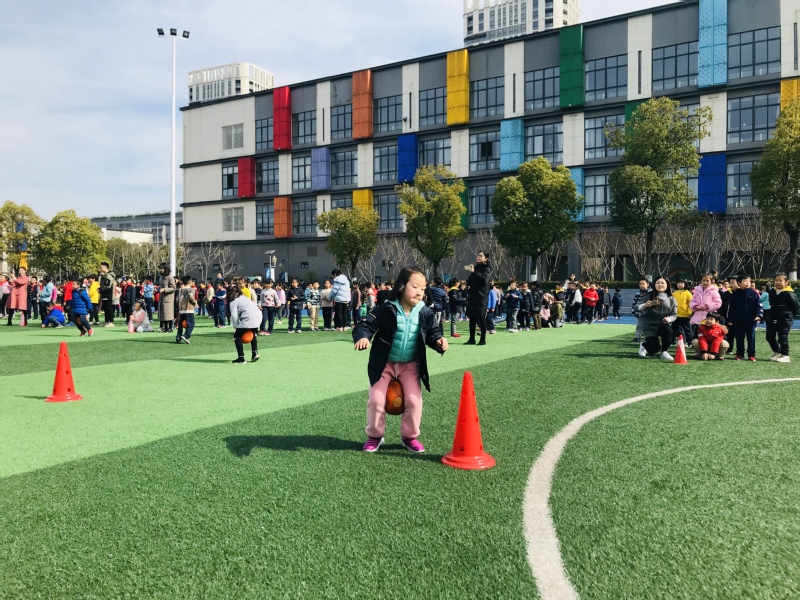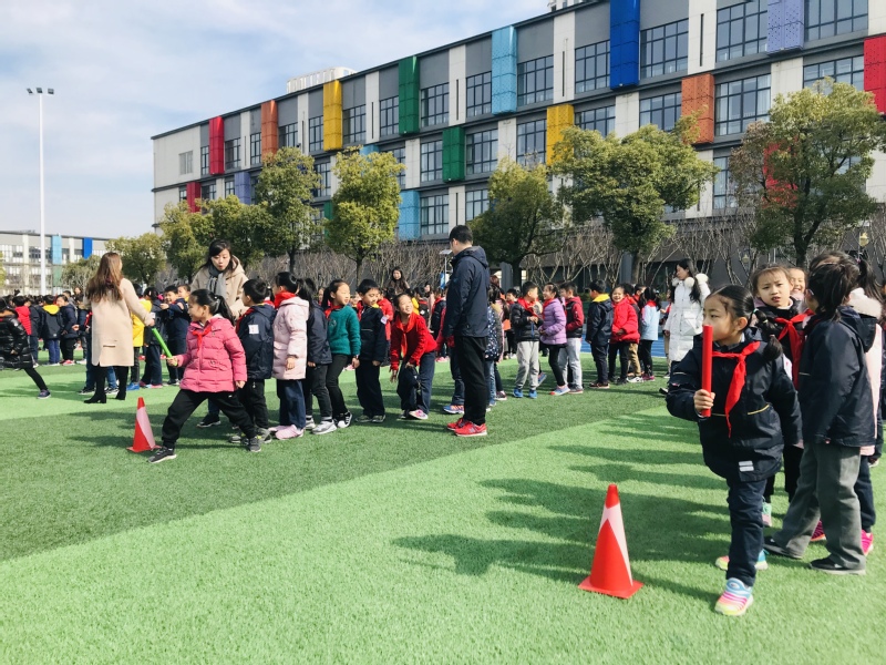 本场“月月赛”活动包含“往返接力跑”和“夹球跳”两项运动。第一项“往返接力跑”在韩老师的一声令下后正式开始。只听“嗖”的一声,各班运动员就已如离弦之箭,带棒冲到远方。他们步伐矫健、奋勇向前,他们传棒接棒、配合默契。当然也有孩子在活动期间不慎与大地有了“亲密的接触”,但他们却都立刻无所畏惧地爬起来继续冲刺,或许这就是体育精神,这就是“青奥精神”。