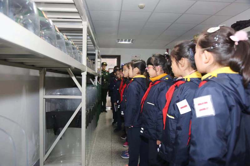 3月6日下午,全校师生来到了武警江苏总队。二、三年级队员走进装备室,巨大的武器让队员们既惊奇又兴奋,参观内务时队员们惊叹连连,纷纷为武警叔叔们点赞。