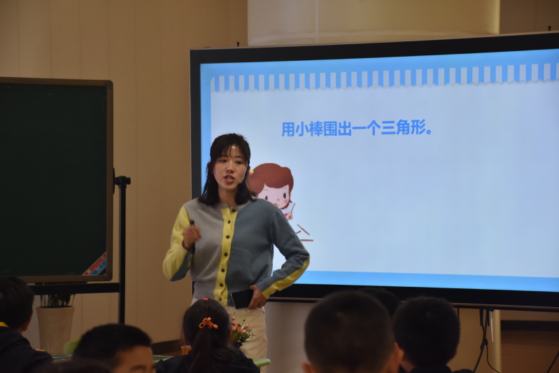 第一节《认识图形练习》一课上,窦亚苒老师能根据一年级学生的年龄特点,将枯燥的练习题精心设计成学生们感兴趣的闯关游戏,通过智取五彩棒、巧折七色纸、精绘多样图等环节,让学生通过操作真切感受图形的特征,进一步提升对图形特点的理解。