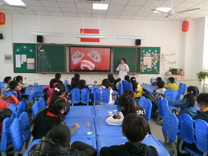 二(7)班洪天一妈妈也给孩子们开设了一堂牙科小知识课,有趣的图片,精美的视频动画让孩子们了解了牙齿的生长历程和爱牙护牙的重要性。天一妈妈还特意带来了儿童牙线棒,教每个小朋友正确使用牙线;通过卡通视频教孩子们“巴氏刷牙法”。课堂上,孩子们听得认真,看得入神,课后都表示要天天好好刷牙,做爱牙的学生!