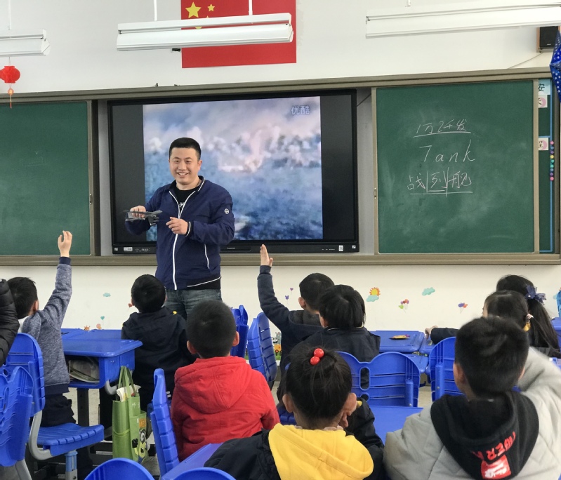 一(7)班的帅泓瑞爸爸给大家带了军事主题的课程。帅泓瑞爸爸用生动的语言、精彩的视频、有趣的模型吸引了小朋友。课堂上,孩子们认真听讲,大胆发问,积极回答。通过这节课的学习,孩子们不仅了解了更多的军事武器,还明白了纪律的重要性。