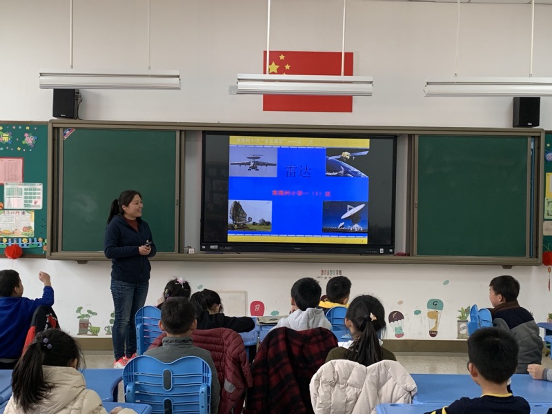 一(1)班李奕扬妈妈和孙可昕妈妈为孩子们介绍了有关“雷达”的知识。为了能让孩子们更全面的了解雷达,妈妈们提前做好了充分的准备,带来了实物,做了形象的ppt,运用自己的专业特长,设计了一节形式多样、内容丰富的活动课程《雷达科普》。整个活动不仅有效地调动了孩子们的兴趣,同时也让孩子了解雷达是怎样形成的,知道了雷达在生活中运用非常广泛。最后还给孩子们带来了有趣的雷达玩具,孩子们都觉得很神奇。