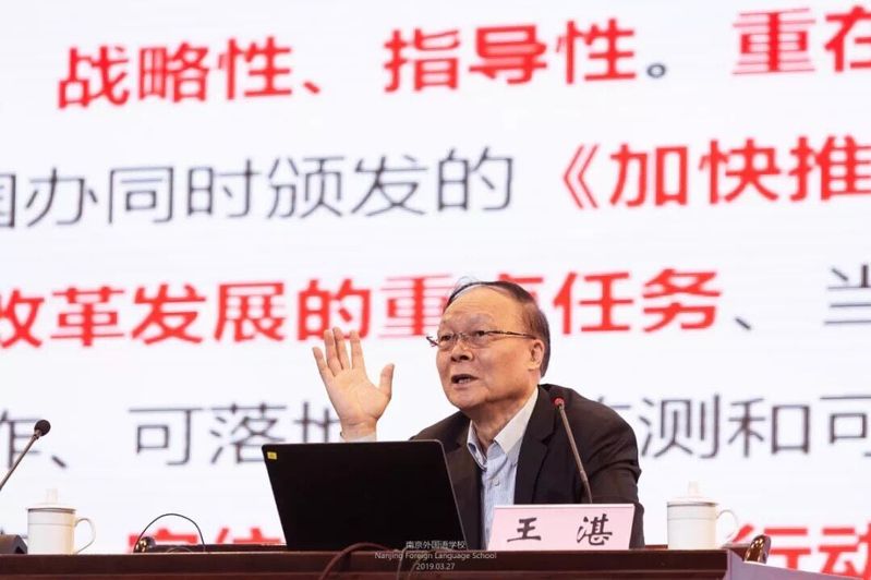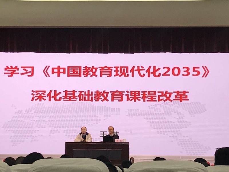 3月27日,我校二十几位骨干教师来到南京外国语学校本部报告厅,聆听学习了教育部原副部长、现国家教育咨询委员会委员、国家基础教育课程教材专家工作委员会主任委员王湛的“学习‘中国教育现代化2035’深化基础教育课程改革”的专题讲座。