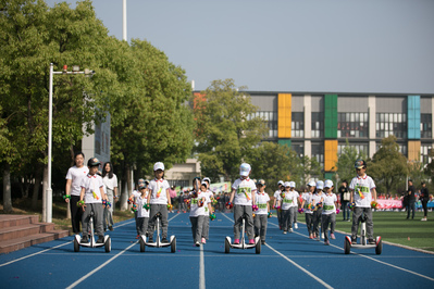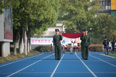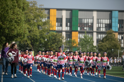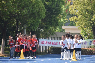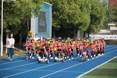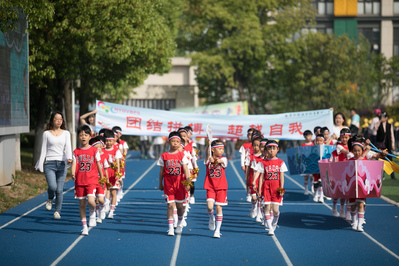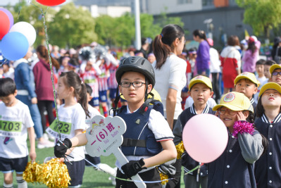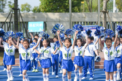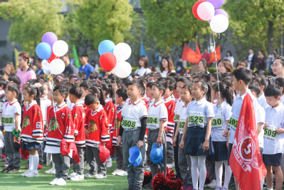 两名校运动会记录保持者担任升旗手,蒋丽云校长致开幕词。随着孩子们亲手放飞气球,运动会正式开始。