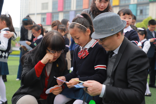 “破冰”活动中,孩子们与爸爸妈妈轻松愉快的游戏互动,欢乐中流露着浓浓的爱意。在主持人深情的开场白后,成长仪式在温馨感人的气氛中开始了。