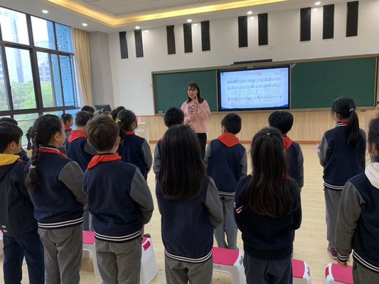 张晴老师执教的《阿西里西》,以彝族的节奏游戏导入,通过学唱彝族方言、感受彝族大山般绵延的旋律等形式,带领学生感受少数民族音乐,轻松学唱歌曲;严明老师执教的《木瓜恰恰恰》由音乐律动导入,通过印尼传统乐器安格隆的演奏,引导学生自主感受音高,学唱歌曲;王硕老师执教的《小黑猪》,创设了“去小黑猪家做客”的情境,通过四分音符与八分音符的节奏游戏闯关、音高闯关,充分调动了学生的学习兴趣,在不知不觉学会节奏后,再由浅入深学唱旋律。