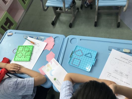 章晗老师为了让一年级的孩子较顺利地学习二年级的知识,之前在校内进行了三次试上,我校数学组老师们和章晗老师一起不断研究调整,最终呈现了以丰富的多边形为学习材料的自主课堂。课上章老师从学生生活中的实物提炼图形,无痕地引入多边形的概念,然后通过同桌合作及自主整理归类,引领孩子们认识多边形,学生自主汇报、自我总结,真正成为课堂的主人。