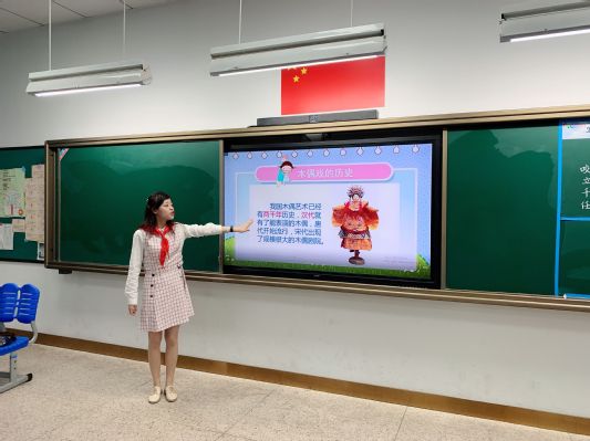 为了引导少先队员更好地了解国家级非物质文化遗产——木偶戏,辅导员老师们提前倡导队员们通过查课外书、网络等载体,查询、交流、探秘木偶戏。随后全体队员共同观看视频,了解木偶的历史以及类别。