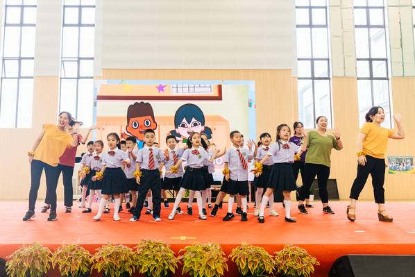 瞧!我们的小萌娃蹦蹦跳跳来到台上,和各科老师一起向爸爸妈妈们展示这一周的成长。孩子们在语文课上学会了好几首诗歌、童谣,在数学课上借助益智小游戏感知数学思想,能用英语自信大方地表达,会在体育老师的带领下列队、打篮球,和音乐老师唱歌跳舞,与美术老师共同创作.....一年级一百多名学生代表和教师们精彩自信的展示赢得了阵阵掌声。
