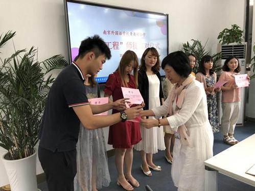 活动伊始,去年参加青蓝工程的六对师徒率先登台,徒弟向师父深鞠一躬,真诚地感谢师父们一年以来的帮助与照顾。在这暖暖的气氛中,张文苑副校长宣布了南外青奥村小学2019-2020学年度青蓝工程的师徒结对名单。胡超群主任也宣读了《教学师徒结队协议》,阐明了师徒双方的职责。随后,蒋丽云校长为本次结对中的师父们颁发聘书。