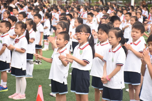 最后,青奥娃娃们化身小百灵鸟,齐唱《爷爷为我打月饼》。伴随着欢快的旋律,偌大的操场成了歌声的海洋。