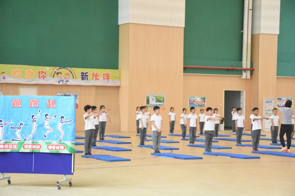 在课堂教学展示环节中,南师附中新城小学的孙娟娟老师带来了《跪跳起》的实践课。孙老师先让学生集体探究、自主模仿,再细致地讲解示范这一技术动作。课上我校学生用心探究、积极操练,展现了南外青奥村小学学子的精神风貌。