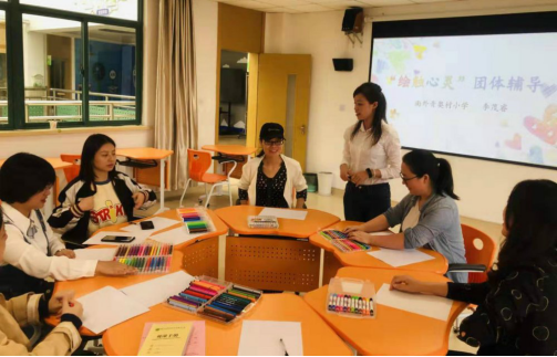 接着,我校的李茂睿老师给老师们进行了一场团体辅导活动——“绘触心灵”。