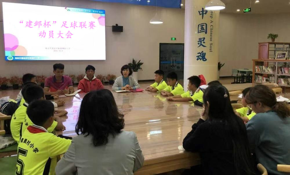 赛前,为全方位做好准备工作,足球队专门召开了“建邺杯”足球联赛赛前动员会,蒋校长亲自到场,和嵇教练一起预祝队员们以精湛的竞技水平和良好的精神风貌,取得比赛成绩和道德风尚的双丰收!