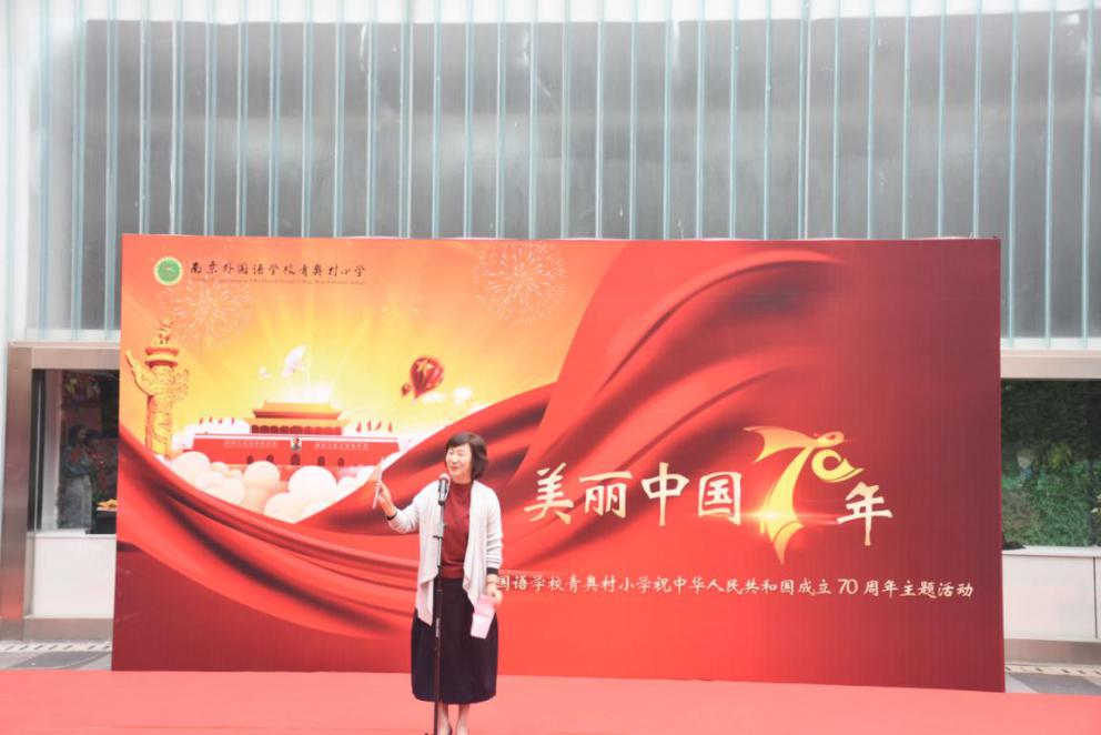 我校蒋丽云校长致开幕词,她说本次书画展是一个很好的契机,希望孩子们能对新中国的变化有更深入的了解,积极展现南外学子蓬勃向上的精神风貌,创作出更多激发正能量的优秀作品。