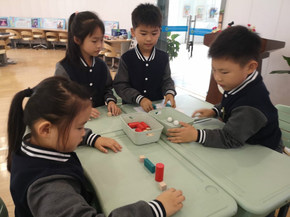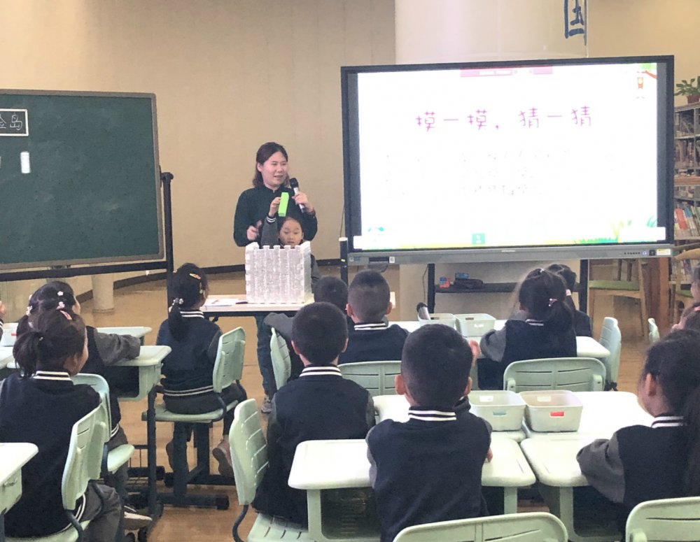 吴凡老师根据一年级上册《有趣的拼搭》的内容设计了《图形冒险岛》一课。吴老师利用学具,通过三个游戏展开教学。结合传统桌游纸牌,让学生在“摸一摸”“猜一猜”“摆一摆”“搭一搭”的游戏中,进一步感知了四种不同图形的特征,提升了空间观念。