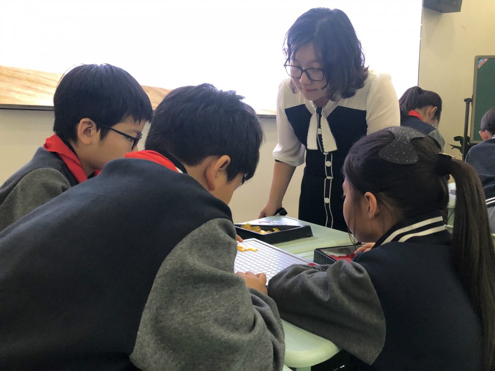 随后,二年级的窦亚苒老师结合两节课,从传统桌游、现代桌游和桌游改编三个方面,将我校短短一学期来,在数学课堂中尝试运用桌游进行教学的初步思考和实践探索情况向在场专家、老师们进行了汇报,并现场让大家体验了《巧板折一折》和《分数一家亲》两个小桌游的乐趣。