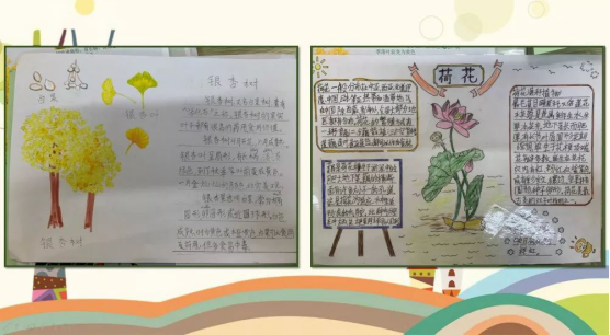 二年级孩子们的则是自己动手制作植物百科卡片。一张张字迹工整的卡片上记录着他们对植物的介绍与研究。在课堂上,孩子们还积极大方地同大家分享了自己的百科卡。
