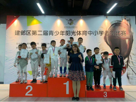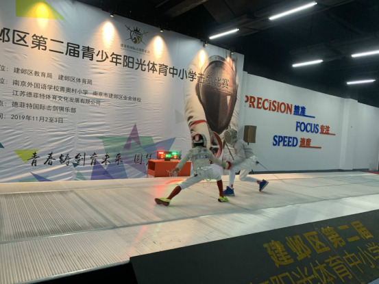 11月2日,建邺区第二届中小学击剑比赛在德菲特国际击剑俱乐部举行,此次比赛由区教育局、区体育局主办,区业余体校、江苏德菲特国际击剑俱乐部和我校共同承办,全区约250余名“小剑客”参加了男女花剑、重剑、佩剑等剑种的比赛。