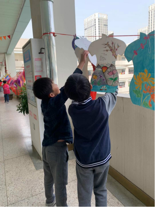 四年级的汉字文化活动更是夺人眼球,瞧!这是他们亲手设计制作的“旗袍”。旗袍是中国和世界华人女性的传统服装,被誉为“中国国粹”和“女性国服”,其源头可以追溯到先秦两汉时代的深衣。他们在旗袍上作画,还配上了自己喜欢的古诗词,服饰艺术与传统文化相得益彰。