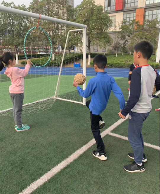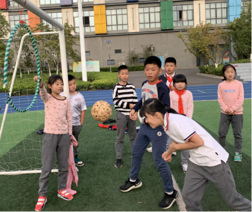 四年级还举行了“蹴鞠比赛”,在拼搏中感受传统文化。蹴鞠,是指古人以脚蹴、蹋、踢皮球的活动,类似今日的足球。早在战国时期中国民间就流行娱乐性的蹴鞠游戏,蹴鞠是中国古代流传久远、影响较大的一朵体育奇葩。2006年蹴鞠已作为非物质文化遗产经国务院批准列入第一批国家级非物质文化遗产名录。四年级的孩子边玩蹴鞠,边进行古诗词“飞花令”接龙,在拼搏中感受传统文化的无限魅力。