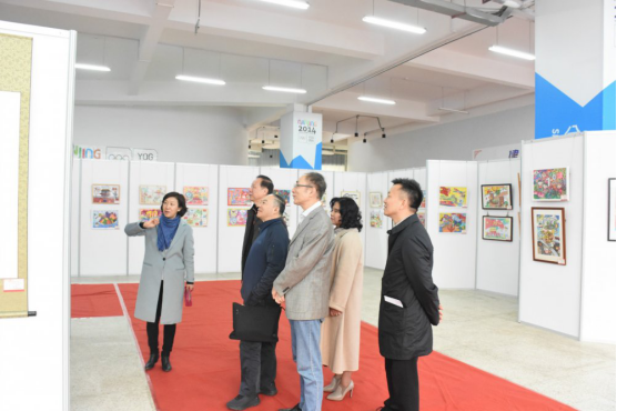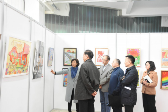 (陆市长一行特别夸赞了我校陈墨老师的作品)