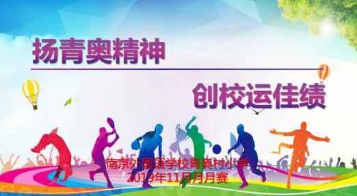 2019年11月28日上午,我校师生们齐聚学校田径场,开展了十一月的体育月月赛活动。本次月月赛的主题是“扬青奥精神 创运动佳绩”,活动内容是往返接力跑和往返夹球跳。