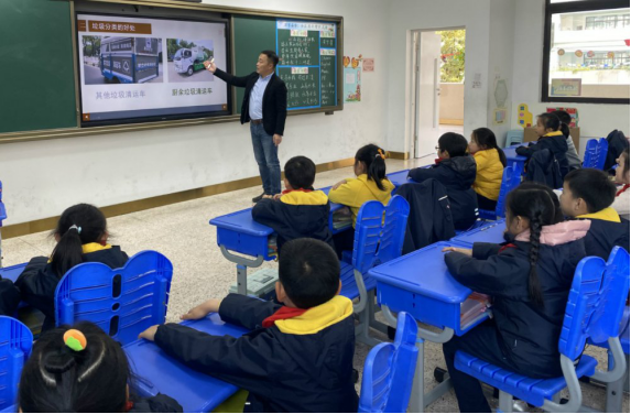 二(5)班的俞又熙爸爸给孩子们带来精彩课堂——《垃圾分类,从我做起》。俞爸从认识垃圾分类标识,垃圾分类的好处和垃圾分类的方法,联系生活实际,向孩子们生动具体地讲述什么是垃圾分类,让孩子们了解垃圾分一分,环境美十分,引导孩子关注环境和资源问题,从自己做起,垃圾分类,保护环境。