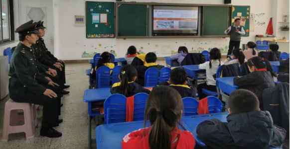 二(4)班的胡呈楠爸爸和四位解放军叔叔给孩子们带来一堂精彩纷呈的《国防责任重 祖国在心中》国防知识课堂。首先,胡爸爸分三个板块分别介绍了解放军叔叔和他们的武器,强我国防的原因,以及少年儿童要向解放军叔叔学习什么等国防知识。其次,解放军叔叔们现场为孩子们做了示范,怎样走步,怎样站立,怎样的坐姿。孩子们沉浸其中,用他们端正的坐姿向叔叔们汇报他们的学习成果。“站是一条线”,深深地印在每个孩子的脑海里。最后,胡爸爸还为二(4)班这个集体送上了珍贵的大炮模型,让它守护着班级的孩子们和老师们。孩子们拿到胡爸爸送的胸标,笑容漾在那一张张稚气的脸上,久久未散……