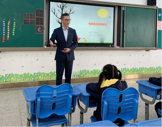 一(4)班徐子渔爸爸给孩子们带来了《儿童安全乘坐电梯》。课堂上孩子们不仅了解到如何安全乘坐电梯,还知道了如遇突发状况该采取怎样的应急措施才能保证自己的安全。整节课,孩子们兴趣高涨,踊跃发言。课后,孩子们还意犹未尽,主动询问徐爸爸电梯的有关知识。这堂课不仅丰富了孩子们的课外知识,也让孩子们提高了安全意识,懂得了生命的价值高于一切,从我做起,安全文明地乘坐电梯!
