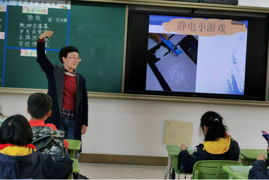 三(1)班的郝龙彬妈妈今天给同学们带来了一节科学课《有趣的电力》。课堂上,郝妈妈运用她丰富的专业知识,给孩子们讲解了什么是电?电从哪里来?怎样安全用电?并通过用尺子摩擦吸纸片的小游戏,让孩子们生动地了解了什么是摩擦起电。整节课内容丰富,孩子们不仅学到了很多关于电的知识,还知道了怎样安全用电,真是一节有意义的课。