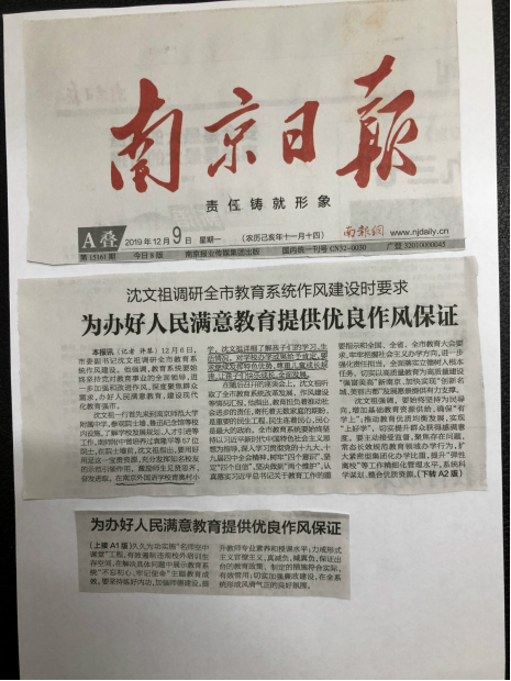 12月6日,市委副书记沈文祖调研全市教育系统作风建设。沈书记一行在调研了南京师范大学附属中学之后来到了我校。