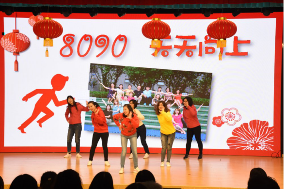 活力四射的体育组老师们富有创意的反串表演引起教师们欢笑阵阵,歌曲串烧部分又将大家的思绪引向美好的回忆中。