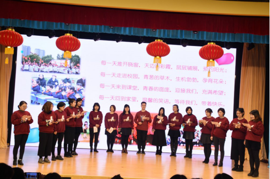 12月31日,伴着冬日和煦的阳光,教师元旦联欢会在小剧场拉开帷幕。南外青奥村小学的教师们欢聚一堂,共庆新年。