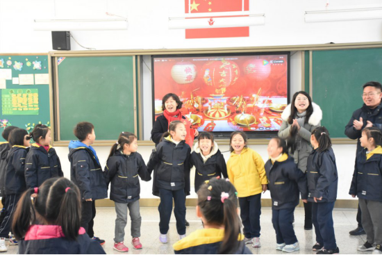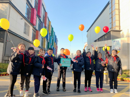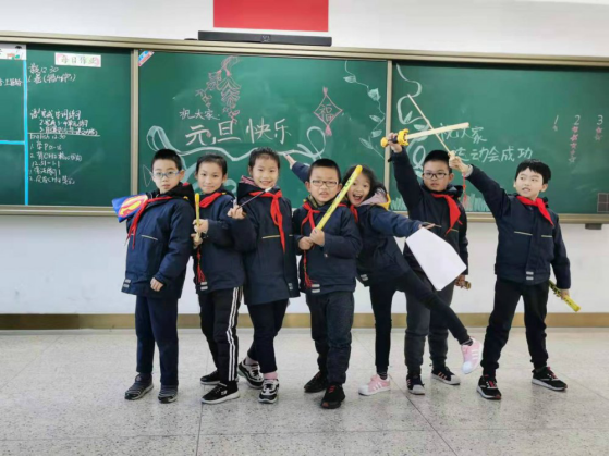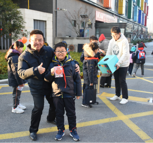 清晨,孩子们怀着对新年的美好憧憬来到学校,校长、老师、大队委员们早已在此等候,笑容满面地迎接每一位孩子。小朋友们兴高采烈地从绑着五彩气球的礼物盒里抽取祝福贺卡,这些贺卡上有全校各个学科老师对孩子们的祝福,祝愿他们在新的一年里身体康、品德端、学习棒。