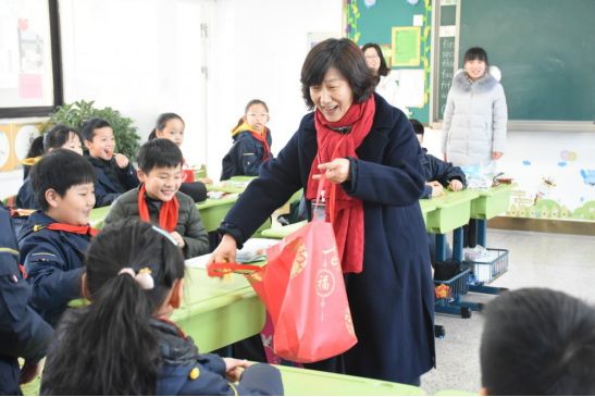 在一片欢声笑语中,教室的门悄悄打开了。哇!原来是蒋校长带领行政班子成员给老师和孩子们送祝福啦!满满一袋的糖果饱含了校长和老师们对孩子们的祝福与关爱。