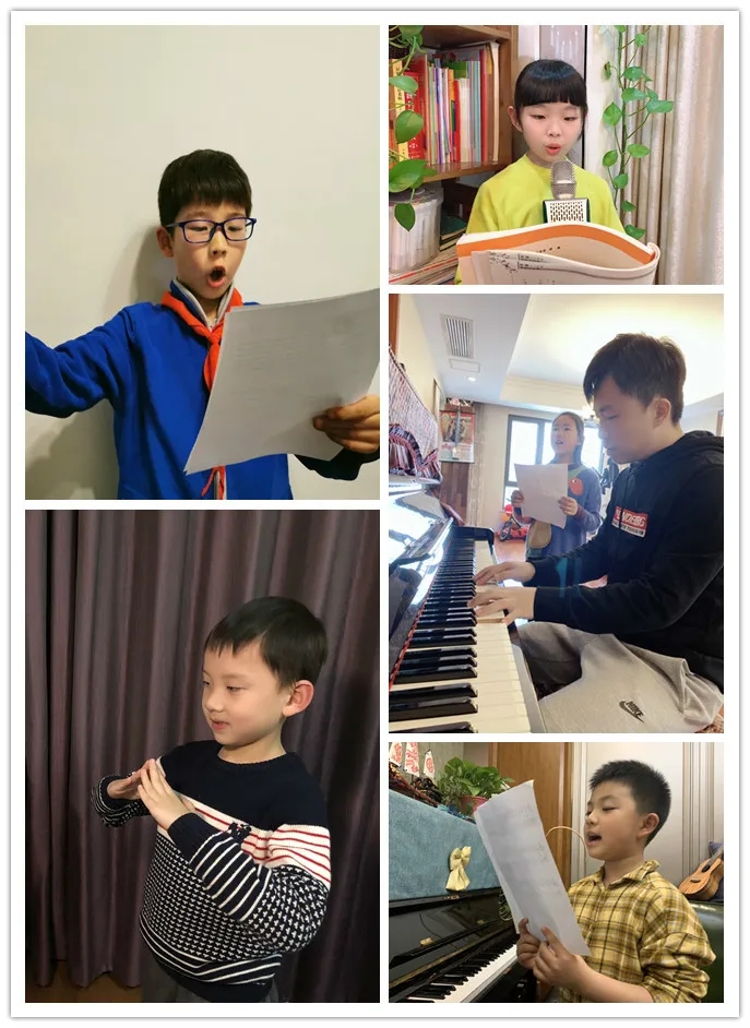 音乐组的4位老师拿到孩子们录制的视频后,要一个字一个字地给孩子们纠正发音,远程指导他们。但即便有老师一对一地指导,过程也不是一帆风顺的,为了唱好一个乐句,许多孩子都要反复练习与录制达几十遍,常常有累了、哭了、气馁的时候,但一想起战斗在疫情最前线的医生、院士、军人、警察、志愿者……孩子们总会鼓起战胜困难的勇气。