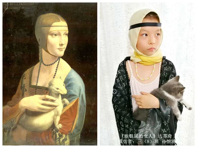 让经典的名画活起来!同学们,你模仿的是哪一幅经典名画呢?作为本届艺术节的亮点之一,名画模仿秀一经推出就得到了各年级同学们的积极响应,一时间校园刮起了一阵cosplay炫风。大家一起寻访世界名画,有的同学更是全家总动员,一起用相机定格艺术的美好,更定格了家的温馨与快乐!