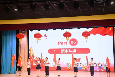 各中队旗手从大队委员手上接过了光荣的中队旗,8支新的少先队中队成立了,星星火炬,代代相传。
