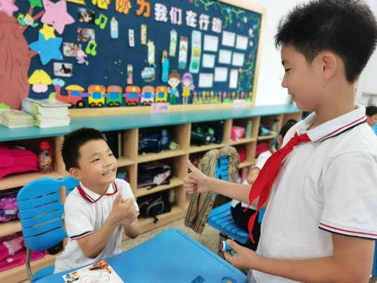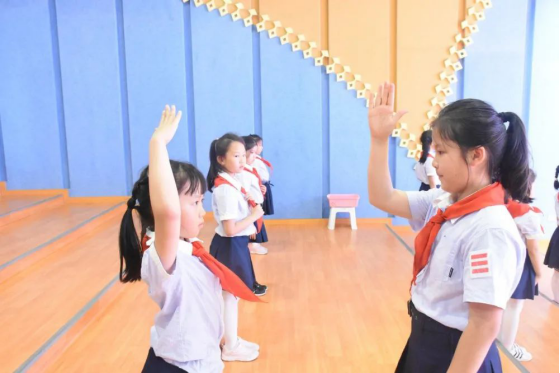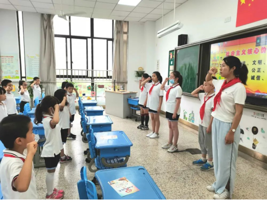 互敬队礼,一张张小脸洋溢着激动与兴奋。