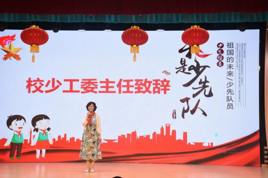 随后,我校少工委主任蒋校长进行了热情洋溢的讲话,她为我们新队员的成长感到高兴与骄傲,愿大家都能牢记入队誓言,好好学习、好好锻炼。