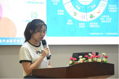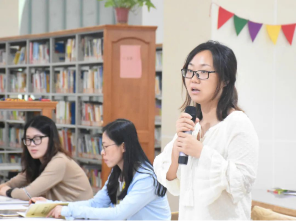 课后,两位老师从教材解读、教学目标、重难点分析和教学过程等几方面分别进行了说课及反思。全体英语教师聚焦主题,就两节研讨课展开了热烈的讨论。大家从“I”课堂的六要素着手,围绕 “教师的教”和“学生的学”各抒己见,表达了自己对如何“智慧地教”以及如何在课堂实现学生的“智慧自生长”的看法与感受。老师们在互动交流中深化了彼此对“支持智慧自生长的英语‘I’课堂”的理解。