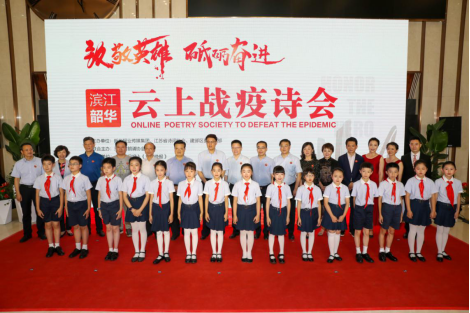 6月21日,我校四年级15名同学在新华报业传媒广场参加了由新华报业传媒集团、江苏省诗词协会、建邺区委宣传部主办,江苏省朗诵协会联合主办的“致敬英雄,砥砺奋进”滨江韶华云上战疫诗会活动,省政协原主席、江苏省诗词协会会长蒋定之等出席诗会,以诗之名,致敬英雄。